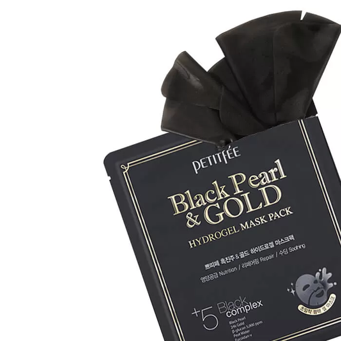 Гидрогелевая маска для лица с черным жемчугом и золотом Petitfee Black Pearl & Gold Hydrogel Mask Pack, 1 уп (5 шт)