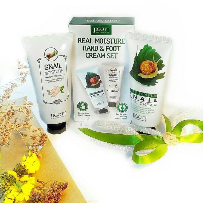 JIGOTT Набор: Увлажняющий крем для рук с муцином улитки + JIGOTT Увлажняющий крем для ног SNAIL