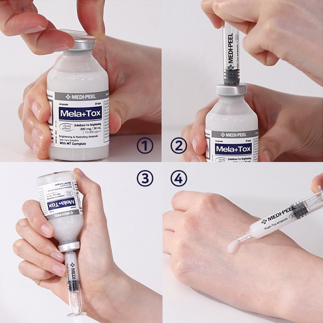 Осветляющая ампула с ниацинамидом Medi-Peel Mela Plus Tox Ampoule делает тон лица более равномерным, устраняет тусклость и покраснения, возвращает здоровое сияние. Активно увлажняет, поддерживает водно-липидный баланс кожи, устраняет стянутость и сухость. Ампула укрепляет защитный слой, восстанавливает естественный микробиом, препятствует появлению раздражений. Нейтрализует воздействие ультрафиолета и свободных радикалов, предупреждает появление нежелательной пигментации и замедляет старение кожи. Повышает барьерные функции, делает кожу более упругой и эластичной, уменьшает видимость морщин и кожных заломов. Ампула обладает плотной текстурой, быстро впитывается, делая кожу мягкой и бархатистой. Благодаря удобному аппликатору на кожу удобно наносить оптимальное количество средства. Способ применения: Снимите прозрачный защитный колпачок с ампулы.Открутите крышечку с аппликатора и проткните им защитную мембрану ампулы.Переверните ампулу, не вынимая аппликатор, и наберите необходимое количество средства.Поставьте ампулу и вытащите аппликатор.Нанесите средство на кожу и равномерно распределите. до полного впитывания.