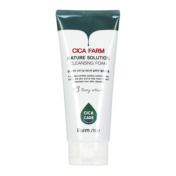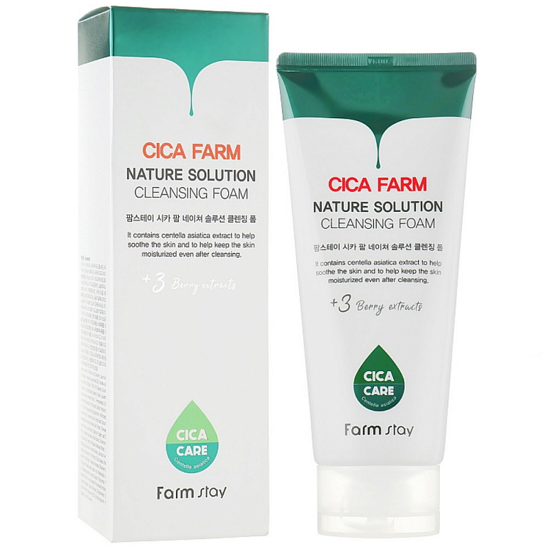 Восстанавливающая пенка с центеллой FarmStay Cica Farm Nature Solution Cleansing Foam помогает справиться с воспалениями, раздражениями и шелушениями кожи. Она мягко очищает, не сушит и не стягивает кожу, ускоряет ее заживление и оказывает противовоспалительное действие. Активным компонентом в средстве выступает комплекс Cica, включающий в себя экстракт Центеллы Азиатской (10,993ppm), мадекассовую и азиатиковую кислоту и мадекассосид. Этот комплекс ускоряет регенерацию, успокаивает и восстанавливает кожный покров, а также стимулирует синтез коллагена, улучшая текстуру кожи и замедляя процессы старения.